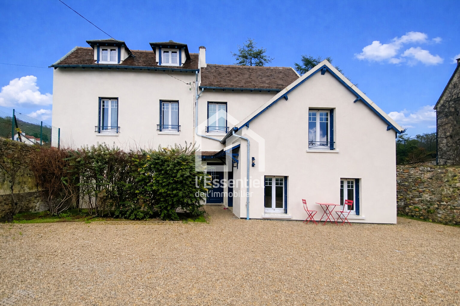 EXCLUSIVITE – Située dans un quartier résidentiel , recherché à Triel , proche gare, arrêt de bus , Vous serez séduits par cette maison de charme de 1900 entièrement rénovée ( Electricité , chaudière, sol , mur, salle d’eau, cuisine, menuiserie, porte d’entrée , portail motorisé ,isolation intérieur/ extérieur, isolation des combles …) et d’une extension de 2015 ; d’une surface habitable de 167 m² , elle vous offre une entrée avec placard de rangement , salon avec poutres apparentes, cuisine dînatoire équipée , verrière , aujourd’hui office de salle de sport avec porte fenêtre accès sur l’extérieur, salle à manger avec belle hauteur donnant sur une mezzanine ( bureau) , un bureau ( ou chambre d’appoint ) water closet avec lave mains , buanderie avec porte donnant accès au jardin. Nous accédons à l’étage par un escalier ancien , palier / couloir desservant quatre chambres, une salle d’eau ( douche à l’italienne) + water closet suspendu ( fenêtre) ; Au deuxième étage : suite parentale avec sa salle de bains + water closet , un grenier avec belle charpente apparente pouvant être aménagé . Cette jolie dame relookée bénéficie de trois places de parking , d’une cave en pierres apparentes et d’une remise extérieur . Son côté atypique enchantera les Amoureux de l’ancien . Terrain clos de murs en pierres d’une superficie de 536 m² . Un vrai coup de coeur ! Venez la visiter avec votre agence locale , l’Essentiel de l’immobilier.