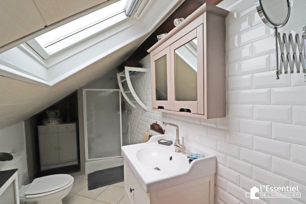 Vous tomberez sous le charme de cette maison individuelle des années 70 , entièrement rénovée avec goût . Proximité gare , écoles, commerces. Elle se compose au rez de chaussée , d’une entrée donnant sur un agréable séjour avec cheminée à insert , cuisine équipée dînatoire , une chambre , une salle d’au récente : douche à l’italienne avec fenêtre , water closet séparé ; A l’étage , palier desservant deux belles chambres dont une avec placard de rangement, une salle d’eau avec water closet . Deux greniers isolés servant de rangement bien appréciés . Le tout élevé sur sou s sol total avec fenêtre : garage , buanderie / lingerie , atelier ; un appentis extérieur . Beau terrain clos , joliment fleuri de 500 m². Pour les amoureux des maisons de caractère : Coup de Coeur assuré . Une belle Exclusivité l’Essentiel de l’Immobilier !